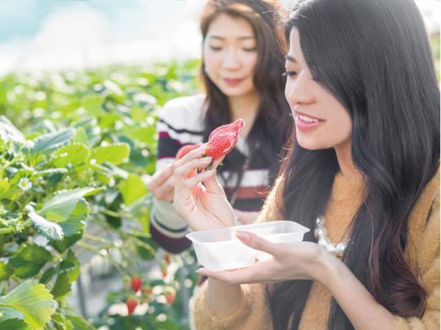 いちご狩り(FUORJ00034プラン)では、大人(中学生以上)料金はわずか2,200円からで、追加の練乳ミルクは無料でお替りできます。時間に追われず、心行くまでいちごを楽しむことができるのも、心強いポイントです。そして、できたてのいちごを手にする楽しさは、自然の中にいる喜びとも相まって、訪れる人たちの心を満たします。